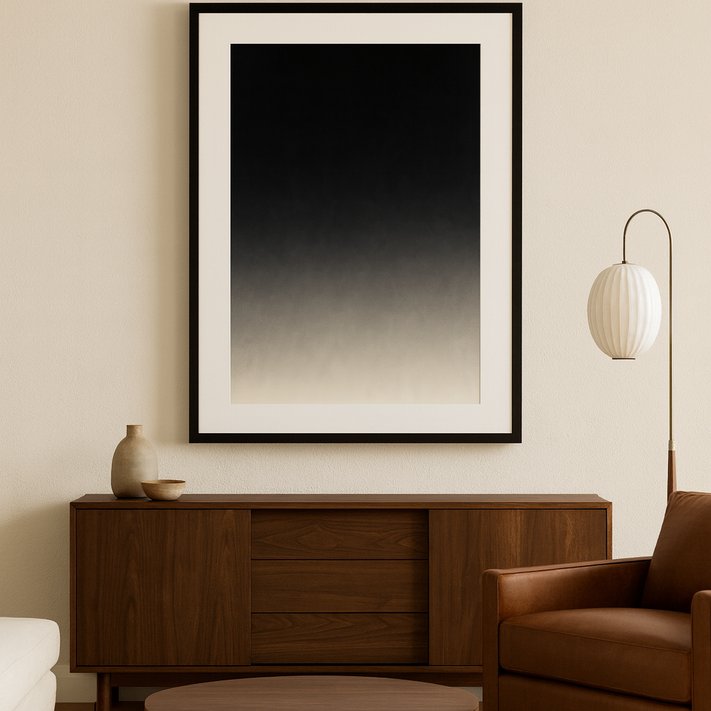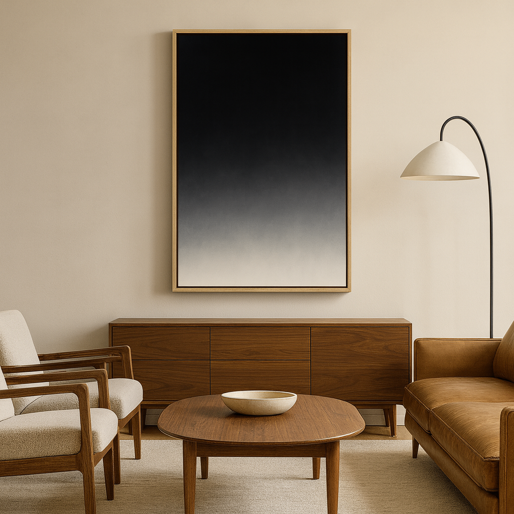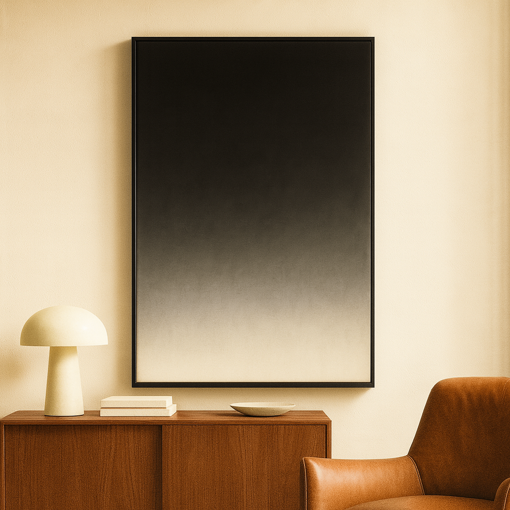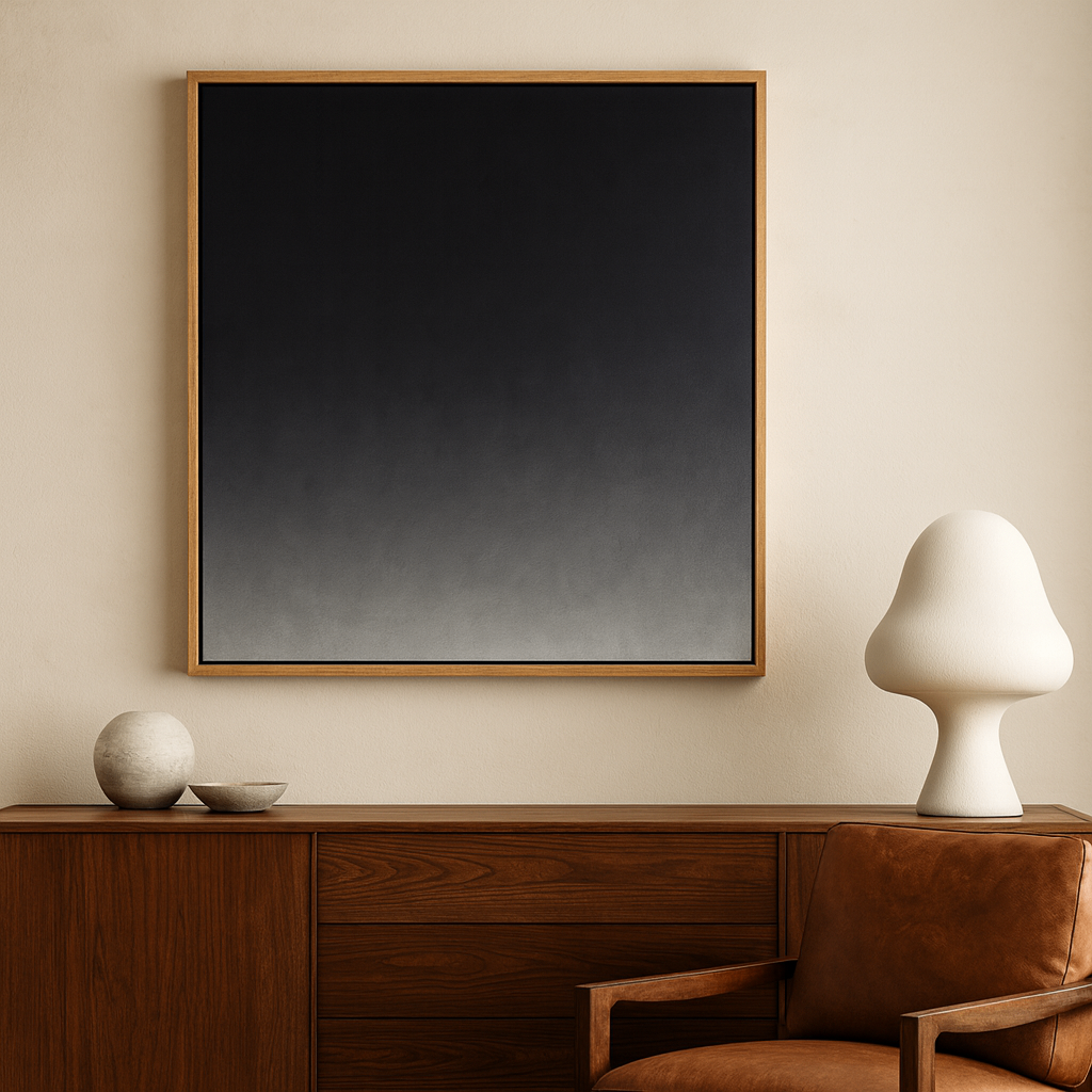 Step into the captivating interplay of darkness and light with Obsidian Glow, a modern abstract painting that radiates quiet intensity. This luxury wall art evokes the mystery of night giving way to the faint shimmer of dawn, where obsidian black dissolves into charcoal and finally softens into a luminous pearl-white glow. The seamless gradient composition creates a sense of depth and movement, transforming any interior into a space of refined drama.