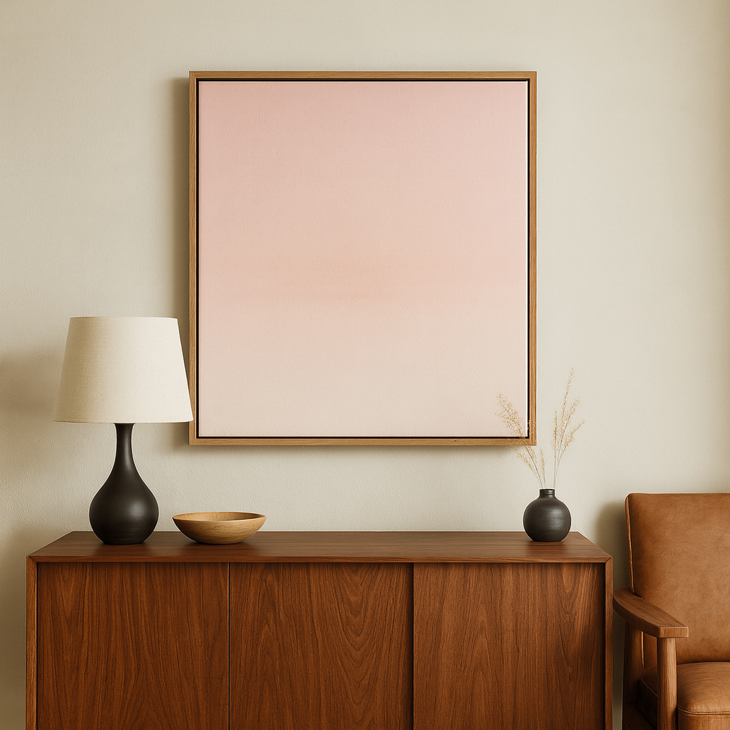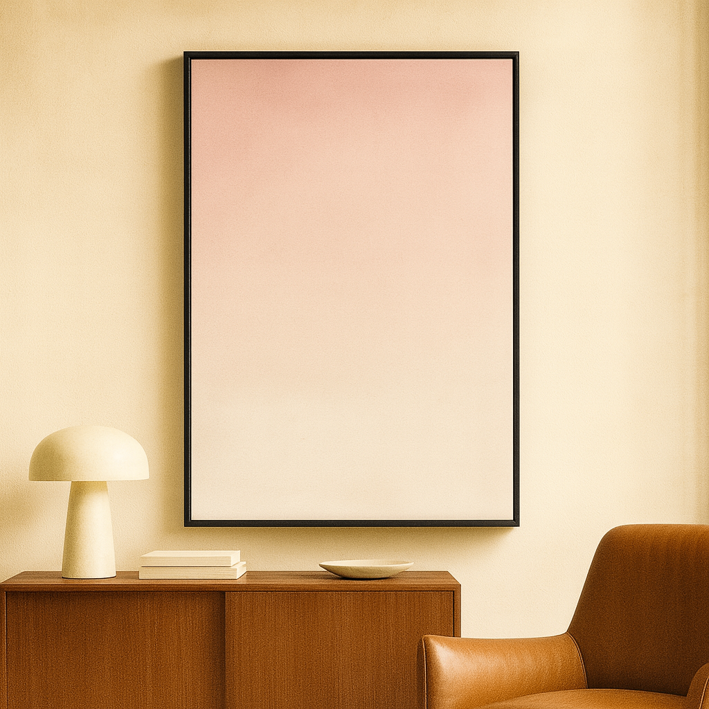 Softness takes form in Rose Mist, a minimalist artwork that evokes the quiet poetry of morning light dissolving into warmth. This luxury wall art carries a tender gradient of pale rose pink, warm blush, and cream, flowing seamlessly into one another with an ethereal delicacy. Its refined composition captures serenity in its purest form—an elegant balance of gentle hues that speak to calm, romance, and timeless beauty. As a modern abstract painting, Rose Mist is more than decor; it is an atmosphere. The smooth, feathered transitions mimic the stillness of dawn mist, offering a sophisticated presence that enhances the tranquility of its surroundings. Perfectly suited for large-scale canvas art for living rooms, intimate bedrooms, or refined offices, its soft pastel palette brings warmth without overpowering minimal interiors. This minimalist artwork is designed to harmonize with luxury spaces, creating an aura of grace and quiet contemplation.