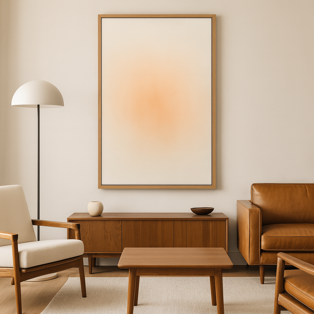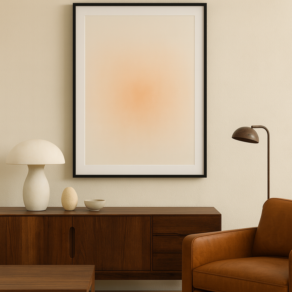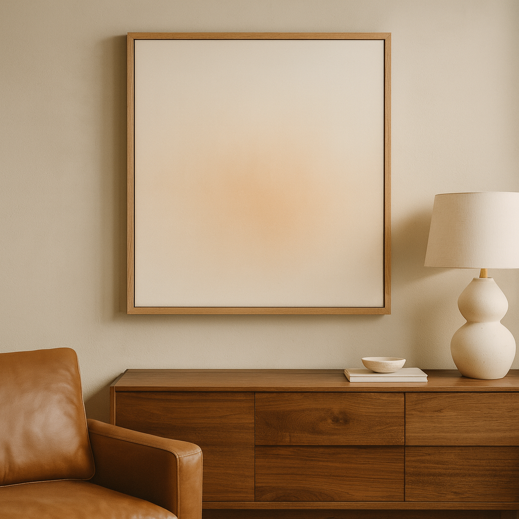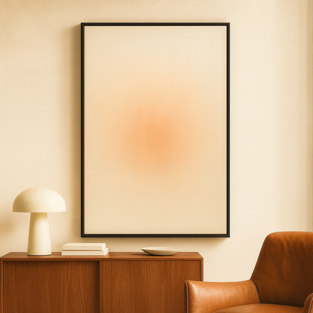 A whisper of warmth unfolds in Saffron Veil, a minimalist artwork that captures the serene essence of light and color in its purest form. This luxury wall art glows with a gentle saffron hue that radiates softly from the center, dissolving seamlessly into delicate shades of ivory. The composition invites stillness and contemplation, evoking the quiet beauty of sunlight diffused through morning air.