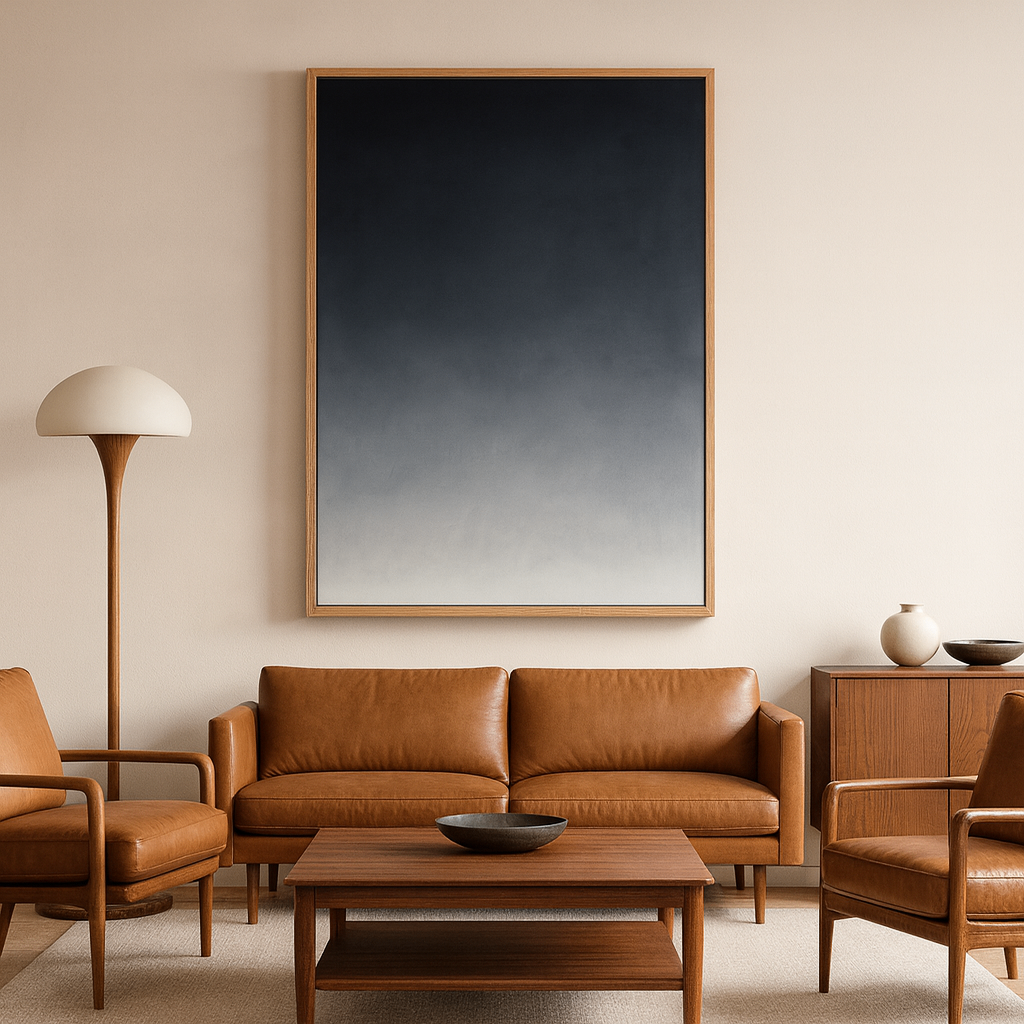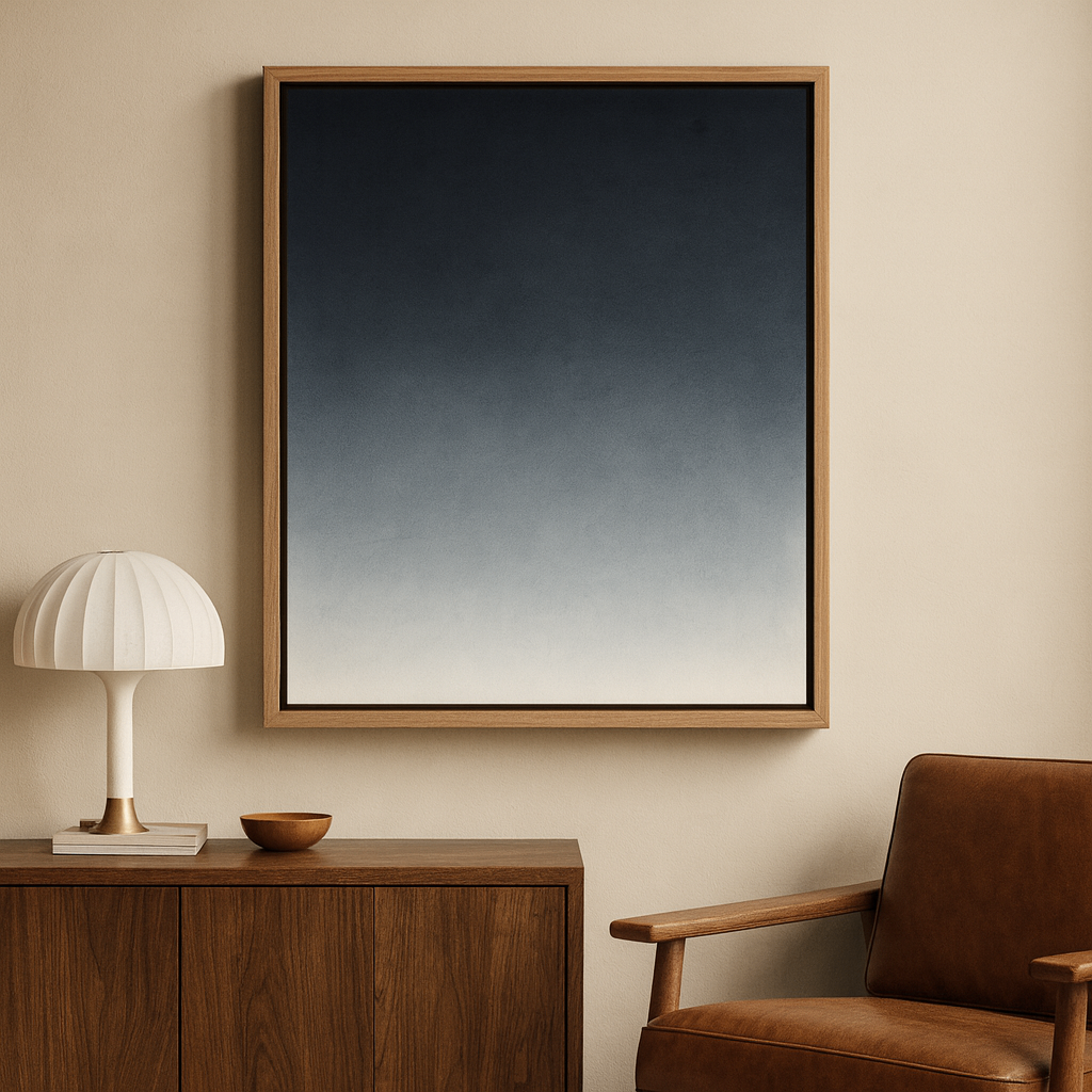 Evoke a sense of refined calm with Slate Glow, a modern abstract painting that captures the quiet beauty of balance and light. This luxury wall art transitions from deep slate grey at the top into soft stone and ivory, creating a sophisticated gradient that feels both grounded and uplifting. Its seamless composition, smooth tonal flow, and minimalist elegance make it a timeless statement piece for curated interiors.