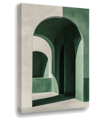 Step into intrigue with Threshold of Mystery, a captivating painting that features a symmetrical arched doorframe set against green walls...