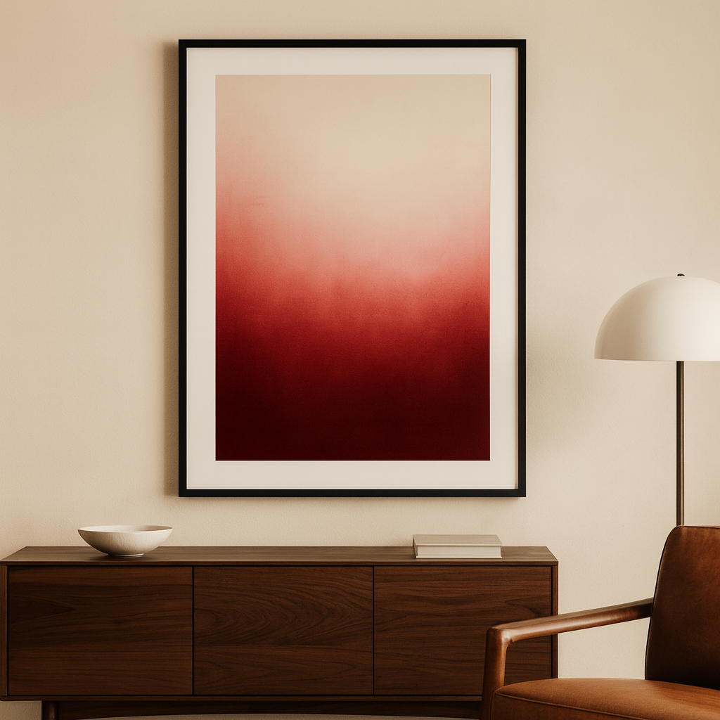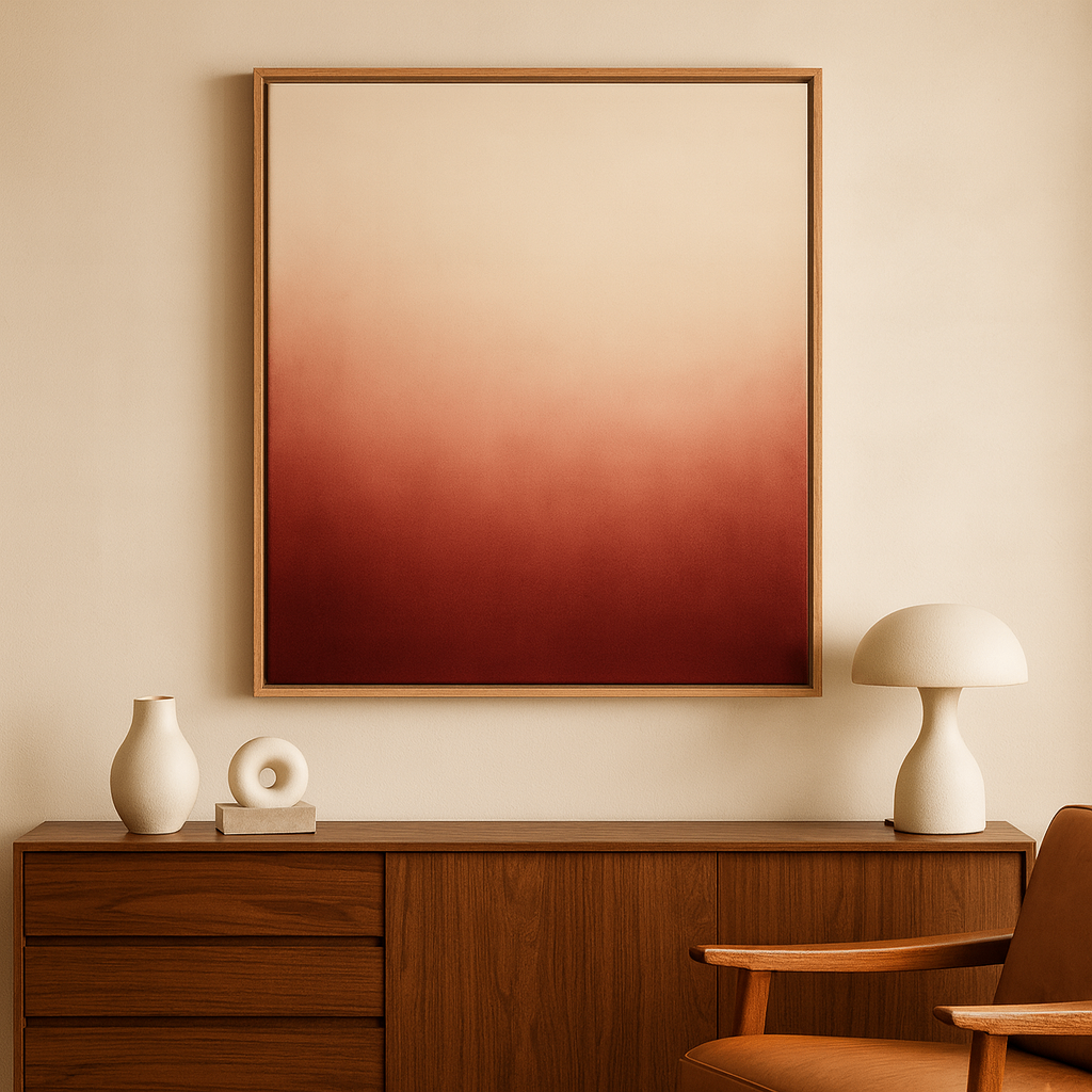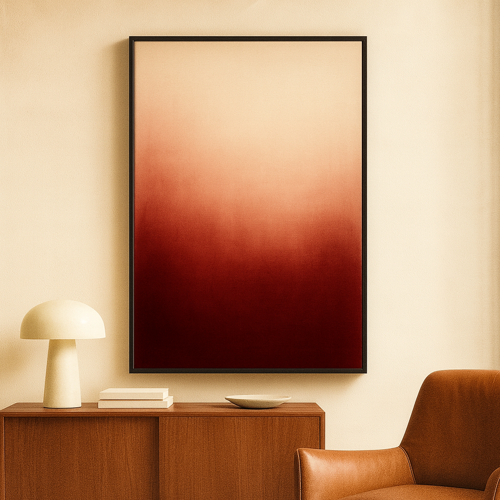 Step into a world where passion and serenity intertwine. Whispers of Rosewood is a luxury wall art piece that captures the depth of romance through a seamless vertical gradient, designed for refined interiors. Beginning with a foundation of rich rosewood red, the composition gently transitions into muted blush before dissolving into airy ivory, evoking the soft afterglow of twilight. This modern abstract painting is crafted with elegance in mind—its smooth tonal blending and delicate balance of warmth create an atmosphere of sophistication. The artwork’s minimalist composition allows the colors themselves to narrate the emotion, offering a sense of both grounded intimacy and quiet uplift. Perfect as a statement canvas art for living room or as a calming focal point in serene bedrooms, this piece brings timeless beauty to any space. Every detail speaks to restraint and refinement, making it an extraordinary addition to a curated art collection for luxury homes.